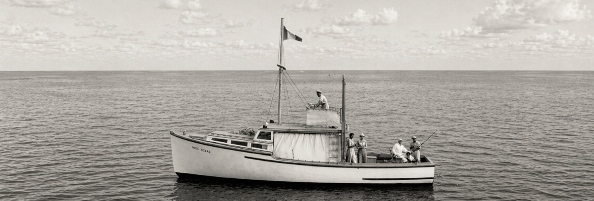 Aboard the Miss Texas, he set out to sea—not in search of rest, but of resistance—as for hours, and sometimes days, the line stretched to its limits, pulled taut by something immense moving beneath the surface: the same quiet duel between man and ocean he had already immortalized in The Old Man and the Sea—only here, it unfolded beyond the page.